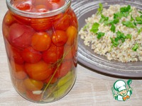 Из закромов достаем баночку с маринованными помидорчиками - черри. И все приятного аппетита! |