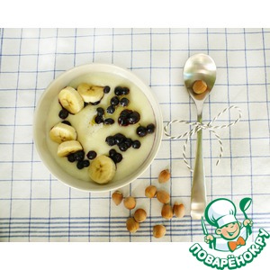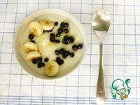 В основу добавим чайную ложечку маргарина (если не поститесь, то сливочного масла) и сыплем много-много любимых топингов! Здесь бананы и черника) Все ведь просто и быстро) |