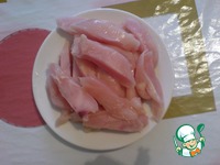 Филе цыпленка режем полосками. |