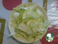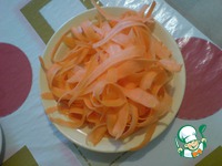 Из моркови, с помощью овощечистки делаем длинную лапшу. Для этого лучше использовать морковь подлиннее. |