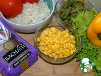 Для данного салата я выбрала рис Басмати от Мистраль, его вкус и аромат меня просто заворожил и подошел сюда идеально. Рис и фасоль отвариваем до готовности, я это сделала в пароварке. |