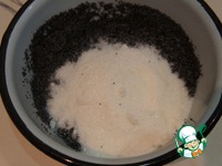 Мак залить кипятком на несколько минут, затем воду слить и добавить 150 г сахара, перемешать. |