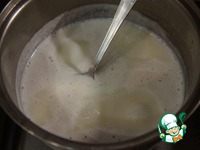 Затем влить 125 мл тёплого молока и растительное масло. |