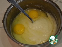 В тёплую манку вбить 2 яйца и тщательно вымешать. |