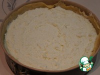 Форму большого диаметра с высокими бортиками застелить пекарской бумагой и смазать маслом. Тесто раскатать в большой круг выложить в форму, оформив бортики до верха формы. |