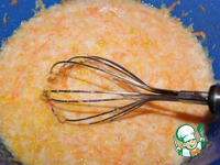 Ввести масло и перемешать. Добавить морковь и яблоки, половину лимонной цедры. Перемешать. |