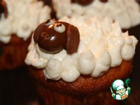 Нанести крем на кексы с помощью шприца и сверху поместить готовые головки. |