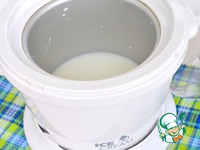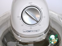 Выливаю охлажденную смесь в мороженицу. Чашу для мороженого предварительно держала ночь в морозилке. |