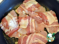 Бекон скрепим зубочистками. Зубочистки можно будет потом вынуть, но мне они нравятся. |