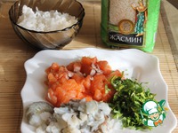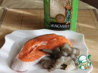 Нам понадобится лосось, креветки, рис, оливковое масло |