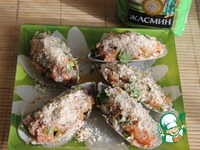 Фарш из рыбы и риса раскладываем по формочкам, можно сделать как я и разложить его в ракушки из-под крупных мидий, посыпать молотым миндалем, сбрызнуть оливковым маслом |