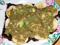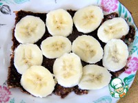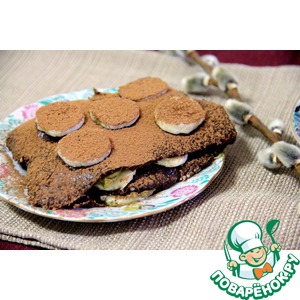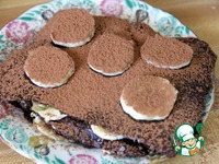 И снова накрыть пластом теста. Сверху положить колечки бананов и посыпать порошком какао. |