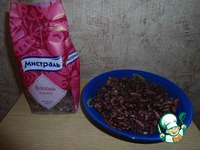 Предварительно замачиваем на 3 часа в отдельной посуде фасоль и горох. Я использовала красную фасоль пинто фирмы "Мистраль". |