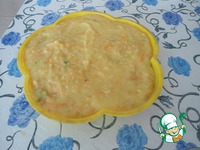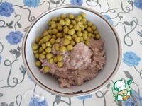 Смешиваем фасолевую смесь с зеленым горошком и выкладываем ровным слоем в форму для запекания. Мне больше нравятся силиконовые формочкм. |