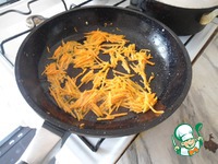 Настал черед моркови. На подсолнечном масле пассировать до мягкости. Затем смешиваем с гороховым пюре. |
