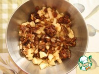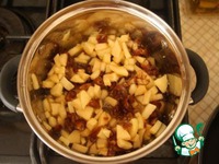 Добавляем в кастрюлю яблоки и финики. Даем немножко пропитаться. |