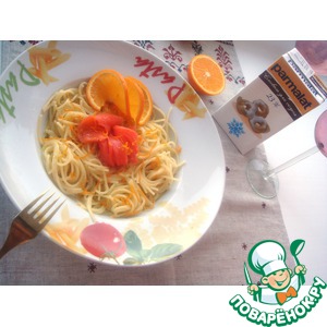 Описание: Спагетти со сливочным соусом с апельсином, ванилью и малосольной форелью. Удивительное сочетание малосольной рыбки с теплым ванильно-сливочным соусом с апельсиновым соком и цедрой - по настоящему изысканное и вкусное блюдо - попробуйте я уверена - вам понравится такое сочетание