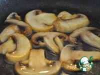 Грибы тонко порежу и быстро обжарю на раскаленной сковороде. Выложу на порционную тарелку. |