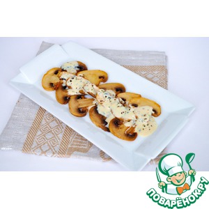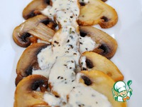 Когда соус начнет густеть, выключаю его и выкладываю на грибы. Сверху посыпаю перцем (горошины черного перца раздавлю ручкой ножа на доске, чтобы было крупно). |