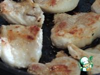 Режем свинину на небольшие кусочки, отбиваем их с двух сторон. Каждый кусок солим, перчим. Обжариваем. |