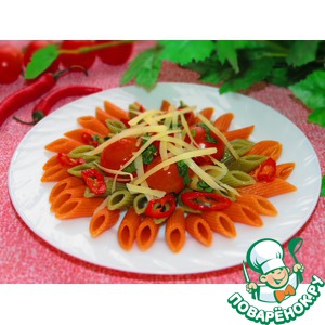 Готовую пасту откинуть на дуршлаг, слегка сбрызнуть оливковым маслом и потрясти, чтобы оно распределилось равномерно. Пасту выложить в сковороду и перемешать с овощами. Посыпать тертым пармезаном. |