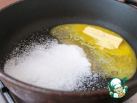 Сначала готовим десертный молочный соус. 50 гр сливочного масла и 60 гр сахара поместите в сотейник или сковороду с толстым дном. |