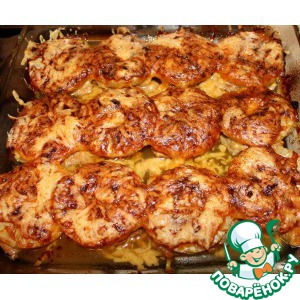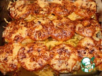 После ананасиков-сыр и заливаем вином. Отправляем в разогретую духовку при 180'С на 45 минут. |