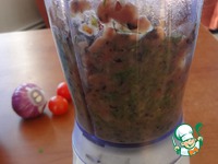 Выложить дип из блендера в чашку и добавить туда мелко нарезанный лук, оставшиеся помидоры без зёрнышек и молотую зиру. Посолить и поперчить по вкусу. Перемешать и убрать в холодильник. |