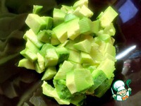 Авокадо очищаем от кожуры, удаляем косточку и нарезаем мелкими кубиками. |