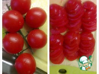 Помидоры черри нарезаем кольцами, лучше всего потоньше. |