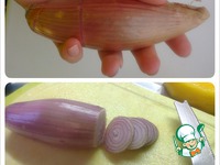 И таким же образом режем лук. (Мне попался израильский лук продолговатой формы, по вкусу ничем не отличается от обычного красного.) |