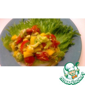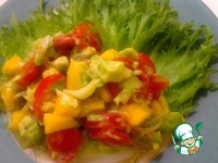 Описание: Вопреки известной формуле «первое, второе и компот», я люблю во время ужина ограничиваться салатом. Но бывают дни, когда организм требует чего-то весомее огурцов и томатов, тогда в ход идет авокадо. А манго - это приятное дополнение, так как я его очень люблю.