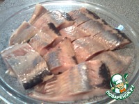 Сельдь выпотрошить, очистить и нарезать аккуратными ломтиками (я разделала на филе). |