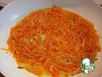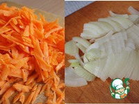 Пока каша варится, режем лук средними ломтиками, морковь трем на терке. |