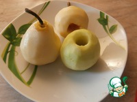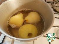 Груши положить в сироп, варить 15 минут. Яблоко, к сожалению, не выдержав испытаний, сошло с дистанции. |