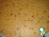 Всыпать в смесь. Добавить промытый в теплой воде изюм. |