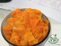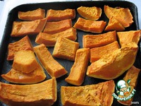 Чтобы получить такое количество тыквенного пюре надо: Тыкву (1 кг) нарезать кусочками и запечь в духовке где-то около 1 ч. |