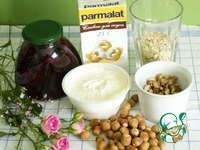 Сливки Пармалат и рикотта из холодильника ) Овсяные хлопья и орехи (у меня по большой столовой ложке миндаля, грецких и лещины) должны быть обжарены. Варенье черносморидиновое домашнее) |