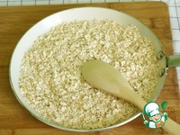 Овсяные хлопья обжарим пару минут на сухой сковороде. Постоянно помешиваем деревянной лопаточкой. В хлопья высыплем измельченные орехи. |