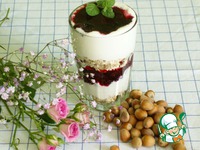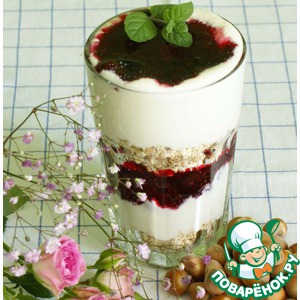 Описание: Сыр рикотта с мюслями) и вареньем из черной смородины.