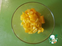 Затем добавить болгарский перец, помидор, консервированную кукурузу и лук-порей, |
