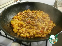 Откинуть на дуршлаг, чтобы стекло лишнее масло. |