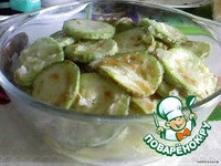 Кабачок посолить, оставить на несколько минут, после обвалять в муке и обжарить. Выложить вторым слоем на картофель. |