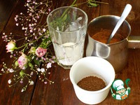 Мы будем делать топинг для рисунков на кофе. Нам надо : какао, тертый шоколад, сахарная пудра, кукурузный крахмал, вода. Я варю в большой турке, можно так же взять маленький ковшик. |