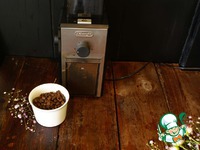 Кофе! Возьмем зерновой кофе. Я храню в холодильнике в герметичной упаковке. Здесь смесь №315 арабика 100% Засыпаем в кофемолку (у меня жерновая и это хорошо) |