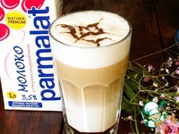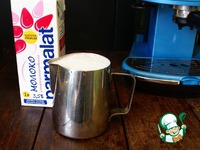 Второй и четвертый слой. При помощи ложки с длинной ручкой выливаем аккуратно вспененное молоко. |