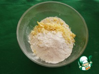 Муку смешиваем с тертой цедрой лимона, разрыхлителем и содой |