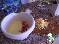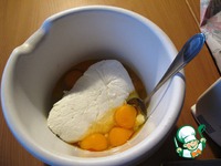 Готовим яично-творожную начинку. Миксером взбиваем творог и яйца. |