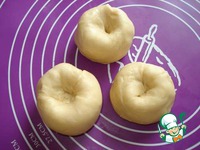 Выложить булочки на противень, застеленный пергаментом, смазать желтком и запекать 25-35 мин при температуре 190 градусов до золотистого цвета. |