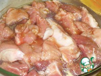 Свинину лучше брать без костей. Нарезаем на средние кусочки. |